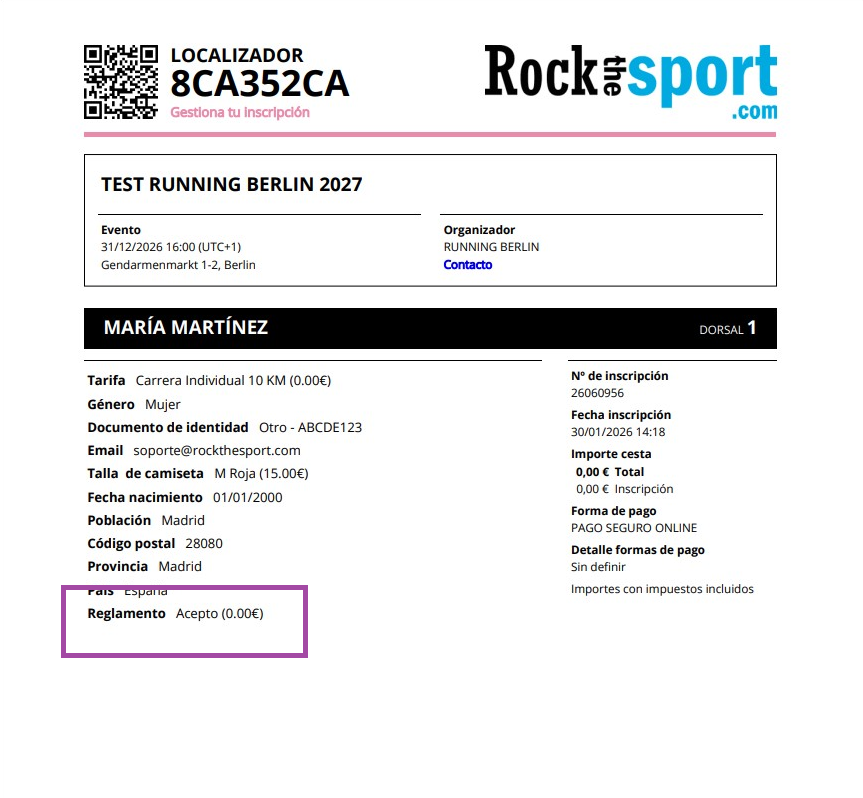 En el formulario, el deportista verá el texto que has incluido y el link para descargar el reglamento.