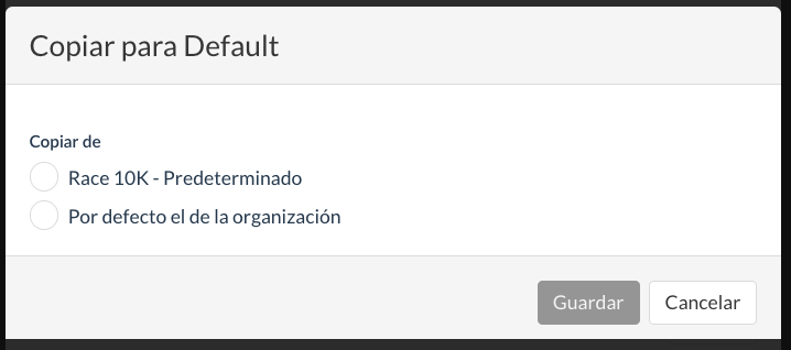 En cualquier momento puedes reemplazar el diseño del diploma. Pulsa sobre el botón "Copiar de" en cada diploma-idioma. Podrás copiar el diseño de otros diplomas configurados en el evento o del diseño de la organización.