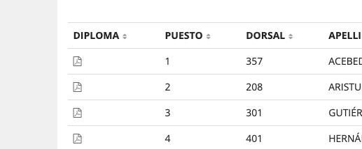 La primera columna de la clasificación mostrará el icono para descargar el diploma