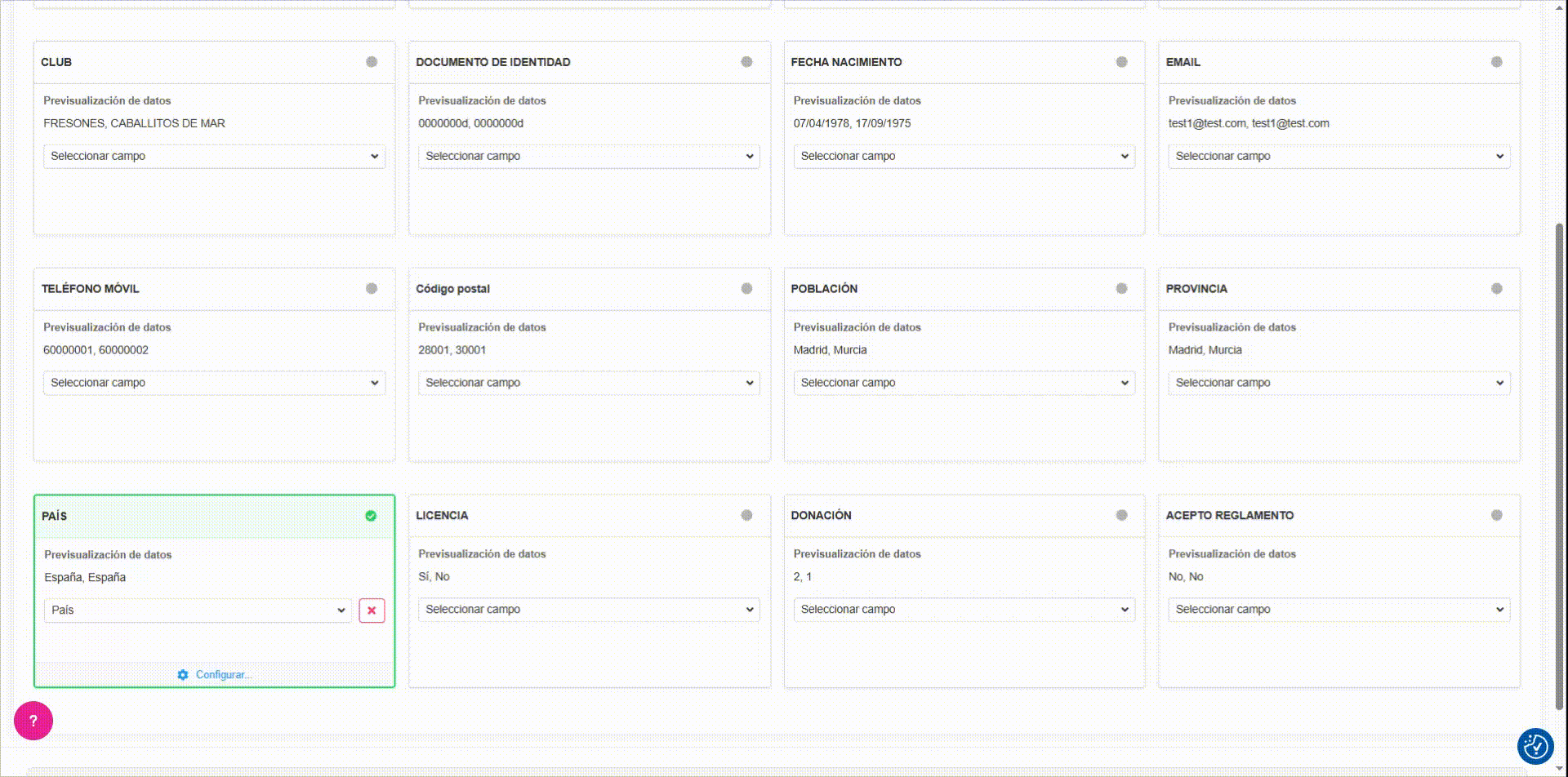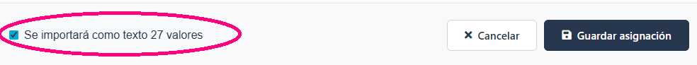 Dado que la plataforma no dispone de un listado competo de todas las provincias del mundo, la IA realiza un mapeo automático de los valores, aunque este no siempre se completa en su totalidad. Por este motivo, es importante marcar la casilla "se importará como texto".