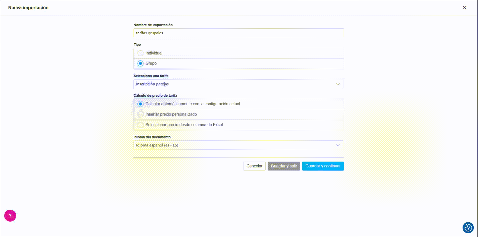 - Automático: En este caso cada inscripción importada se calculará según la configuración actual de los precios del evento.