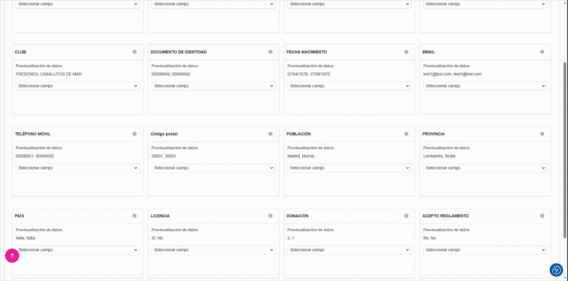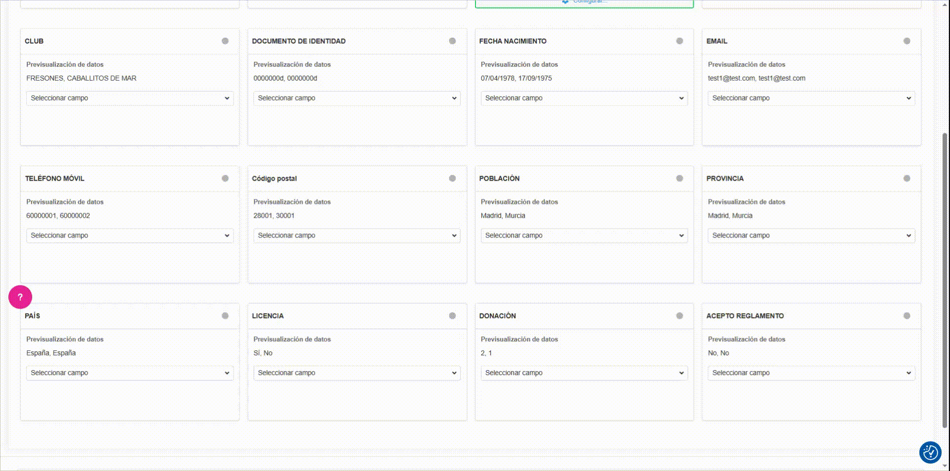 - Relacionar cada campo de la Excel con las preguntas del evento.