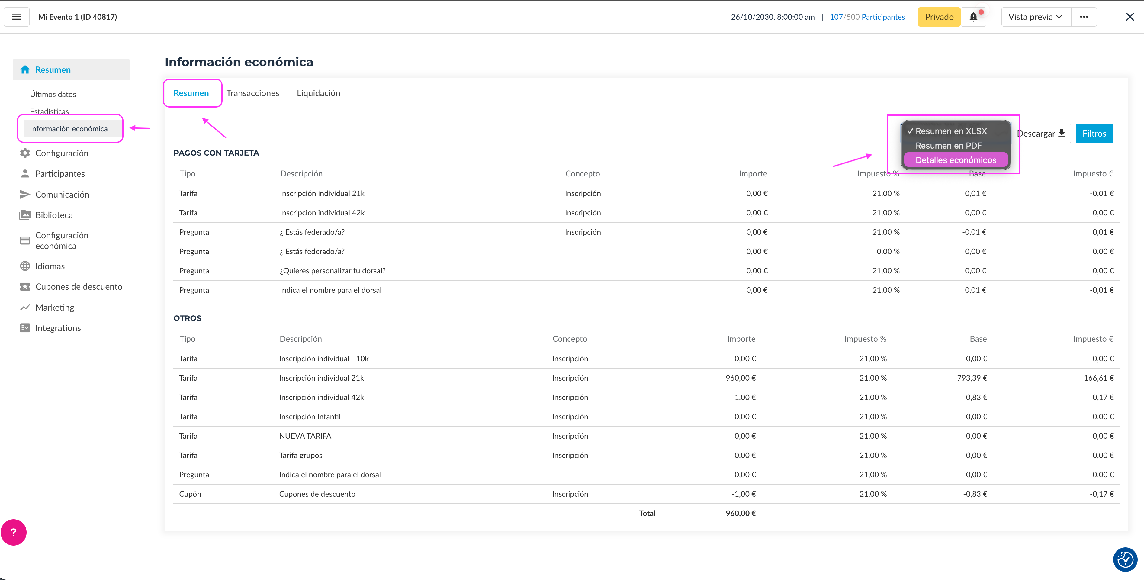 ¿Necesitas saber qué inscripciones están sumando el importe "otros? Descarga el detalle de liquidación