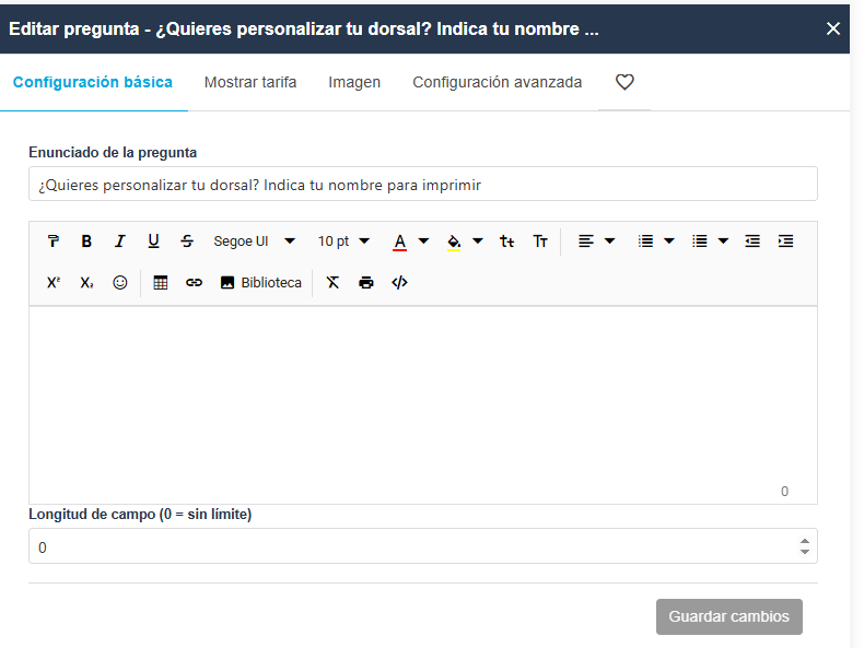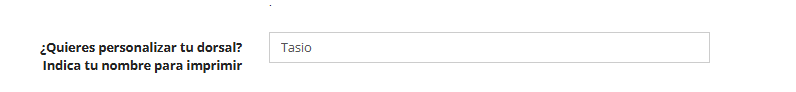 Si necesitas saber el Alias que el deportista quiere incluir en su dorsal, crea esta pregunta tipo texto.