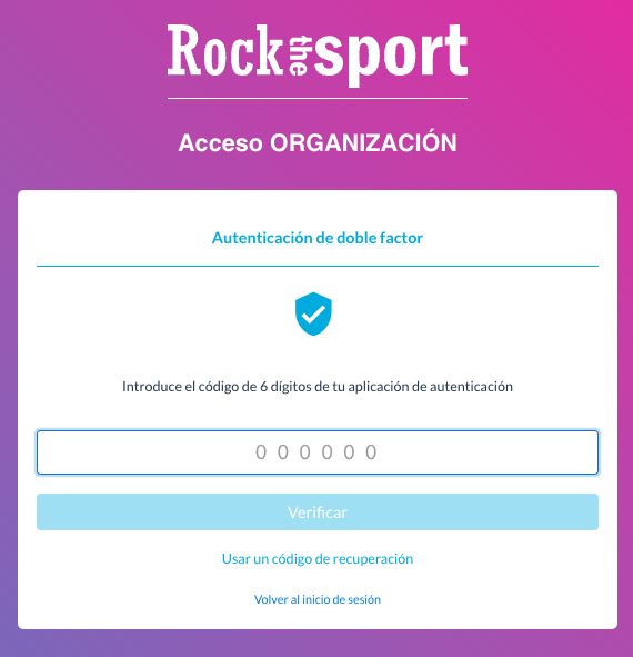 A partir de ahora al logearte/identificar en app.rockthesport.com te pedirá un código válido para acceder y así garantizar la seguridad en tus datos.